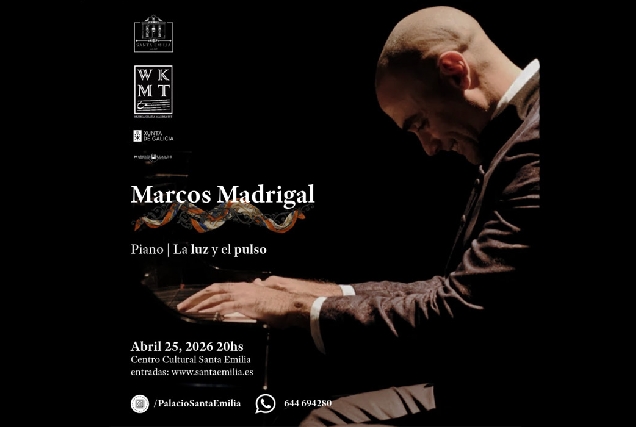 O pianista internacional Marcos Madrigal ofrecerá un recital en Santa Emilia o 25 de abril