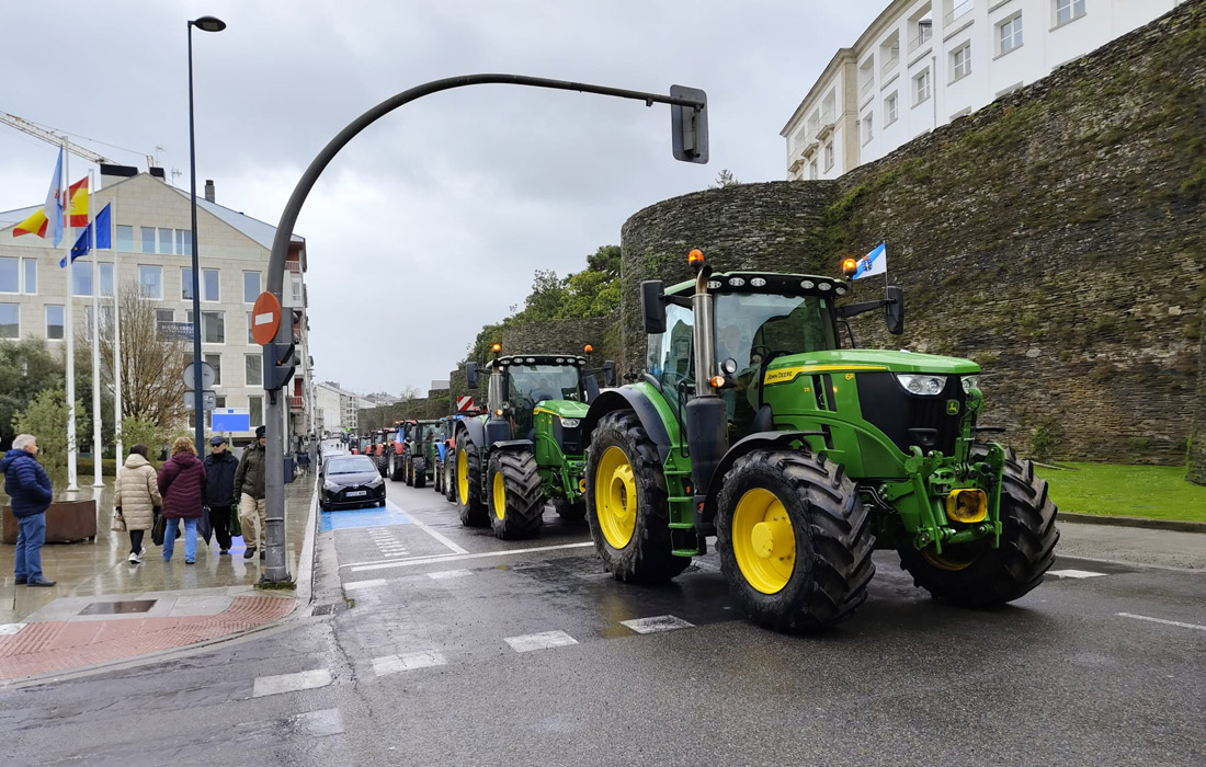 Cientos de profesionales del sector se concentraron en las cercanías de la sede de la Xunta en Lugo e iniciaron una manifestación que recorrió el trayecto hasta a Subdelegación del Gobierno. Como ya había ocurrido en jornadas anteriores, la movilización estuvo acompañada por más de un ciento de tractores, que circularon por las calles de la ciudad y provocaron retenciones de tráfico en las vías próximas al recorrido. Los vehículos agrícolas permanecieron a lo largo del día ocupando uno de los carriles de la Ronda de la Muralla, con la previsión de retirarlos por la noche.