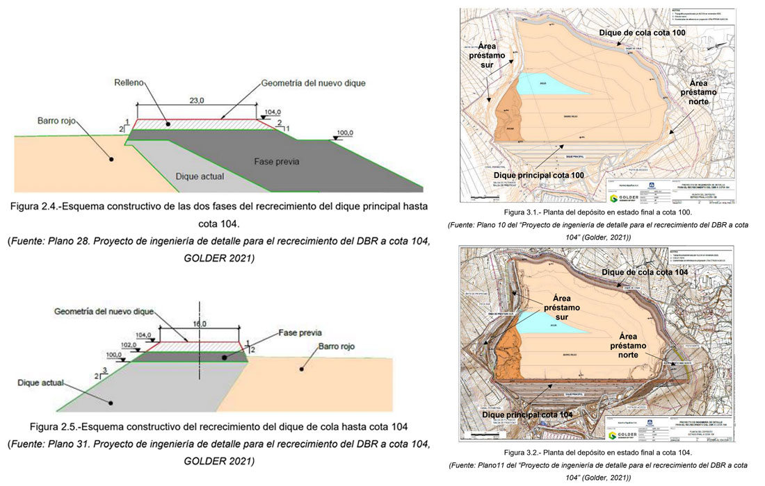 Neste sentido, desde o colectivo ecoloxista aseguran que o proxecto correspondente á cota +104 foi presentado como un “recrecemento”, cando en realidade implicaría unha ampliación tanto dos diques como da superficie da balsa. Segundo indican, parte destas actuacións terían sido ocultadas ao considerarse como “zonas de préstamo”, unha denominación que, ao seu xuízo, non reflectiría a verdadeira natureza dos traballos realizados.