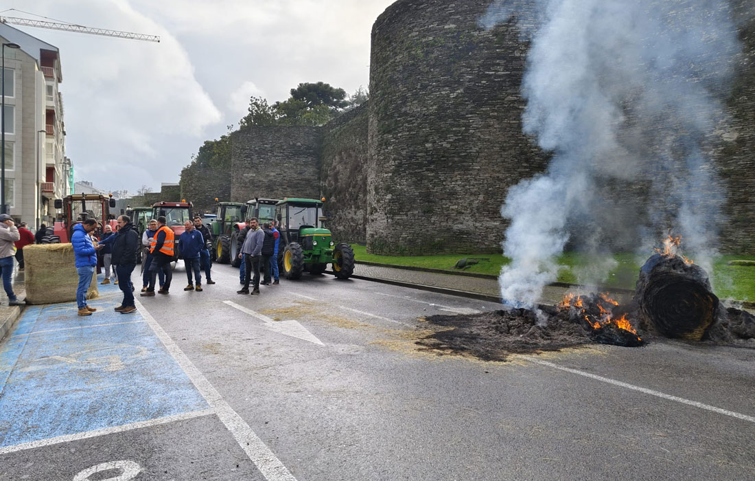 Gandeiros e gandeiras intensificaron este mércores en Lugo as mobilizacións contra o acordo comercial entre a Unión Europea e Mercosur, cunha nova xornada de protestas marcada pola queima de rolos de palla diante de distintas institucións públicas. Ás organizacións Agromuralla e Gandeiros Galegos da Suprema, concentradas na cidade desde o pasado luns, sumouse nesta ocasión o colectivo Gandeiras e Gandeiros Galegos Elas Eles.